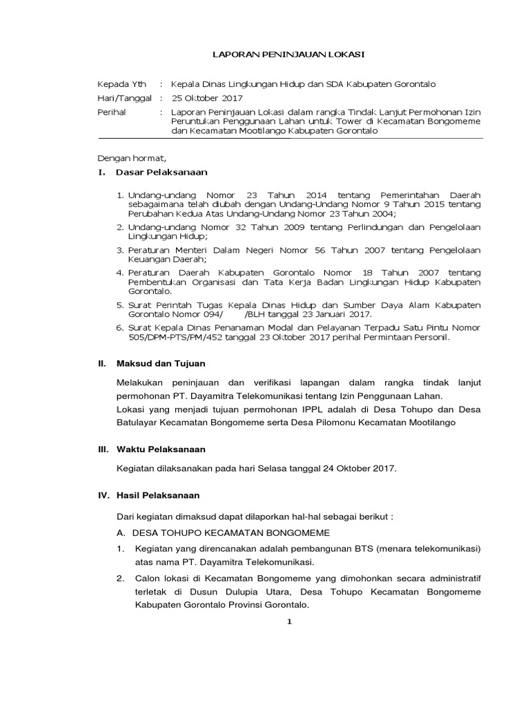 Laporan Peninjauan Lokasi Tower Bts Bongomeme Dan Pilomonu Mootilango Kadis Pdf
